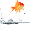 Description: A goldfish jumping out of the water.
